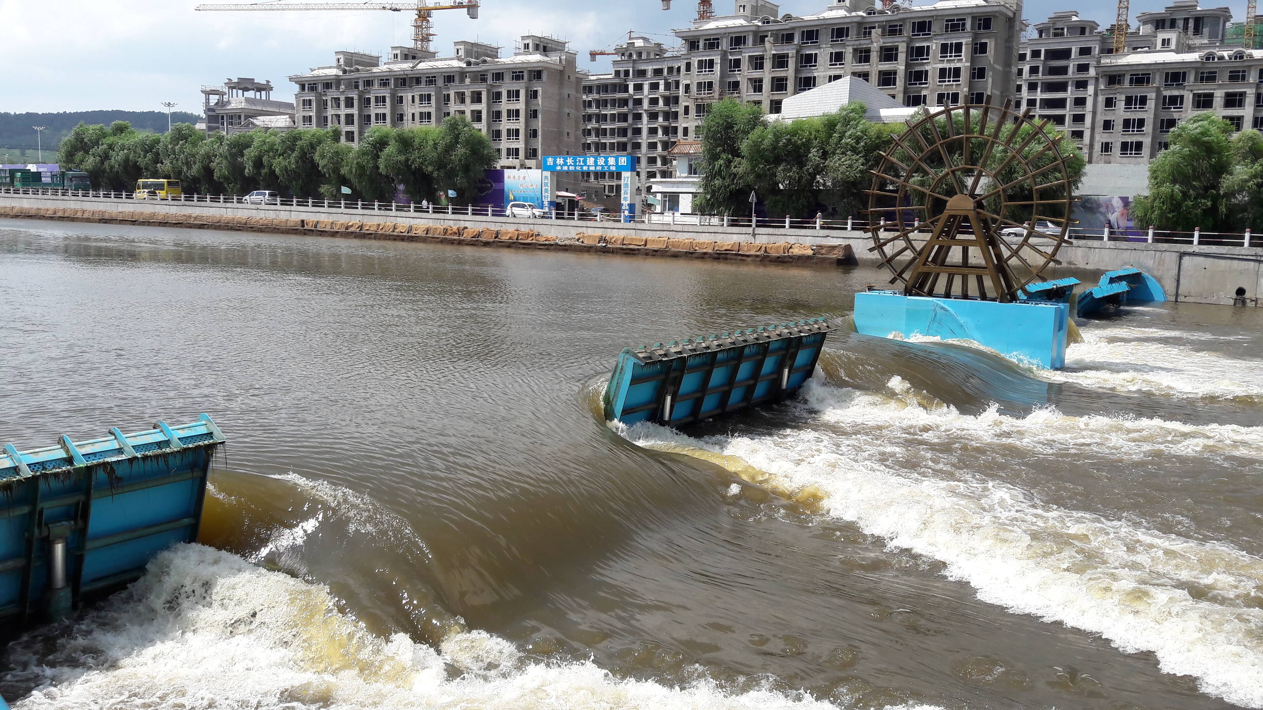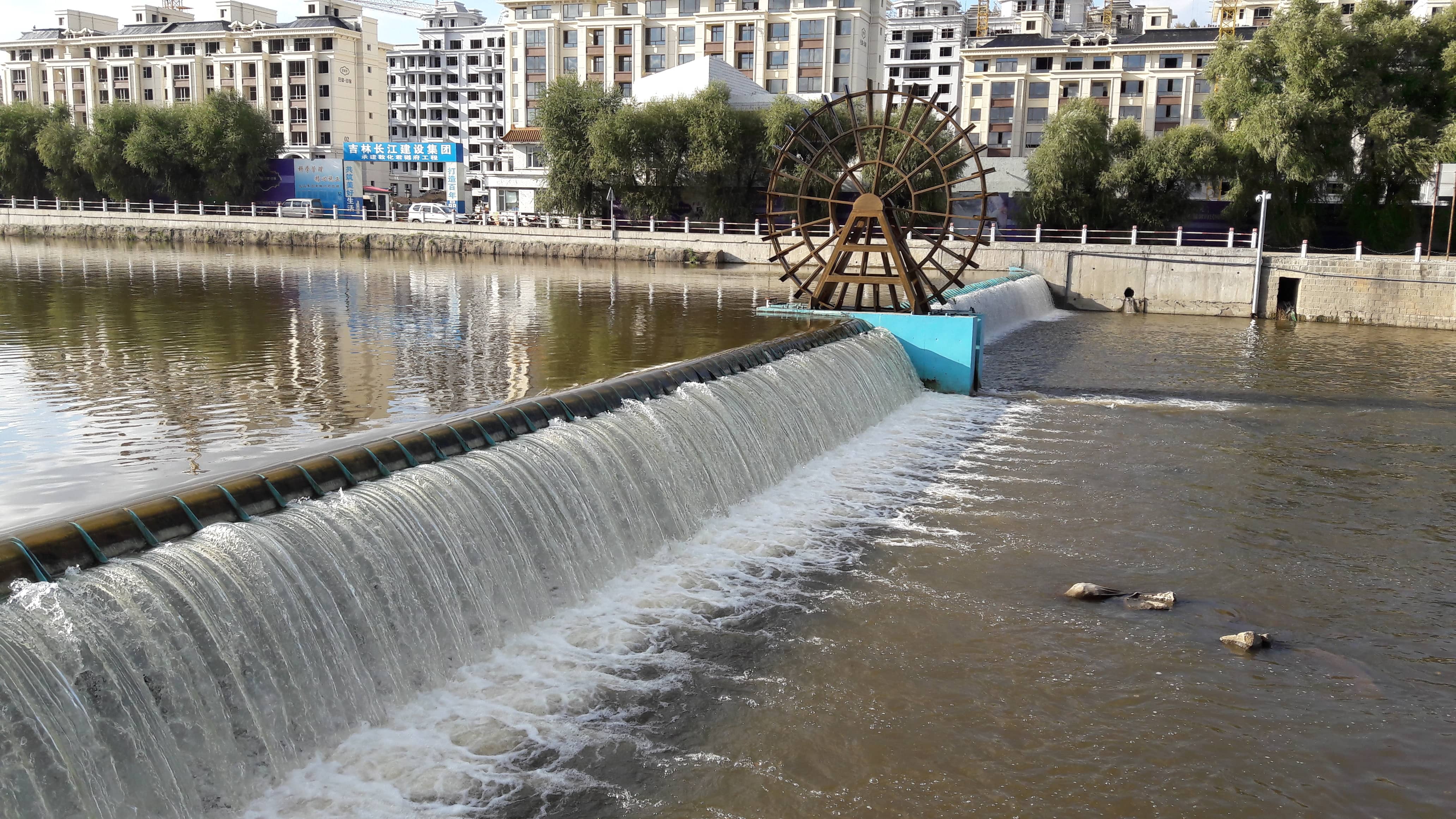工程介紹:該工程采用景觀合頁閘將干流市區(qū)段構(gòu)建成連續(xù)生態(tài)水面,精致別樣的閘體,潺潺流動的人工瀑布,綠意盎然的生態(tài)堤岸和靈動活潑的水車,生動地展現(xiàn)在居民眼前,并給周邊居民提供親水娛樂的場地。