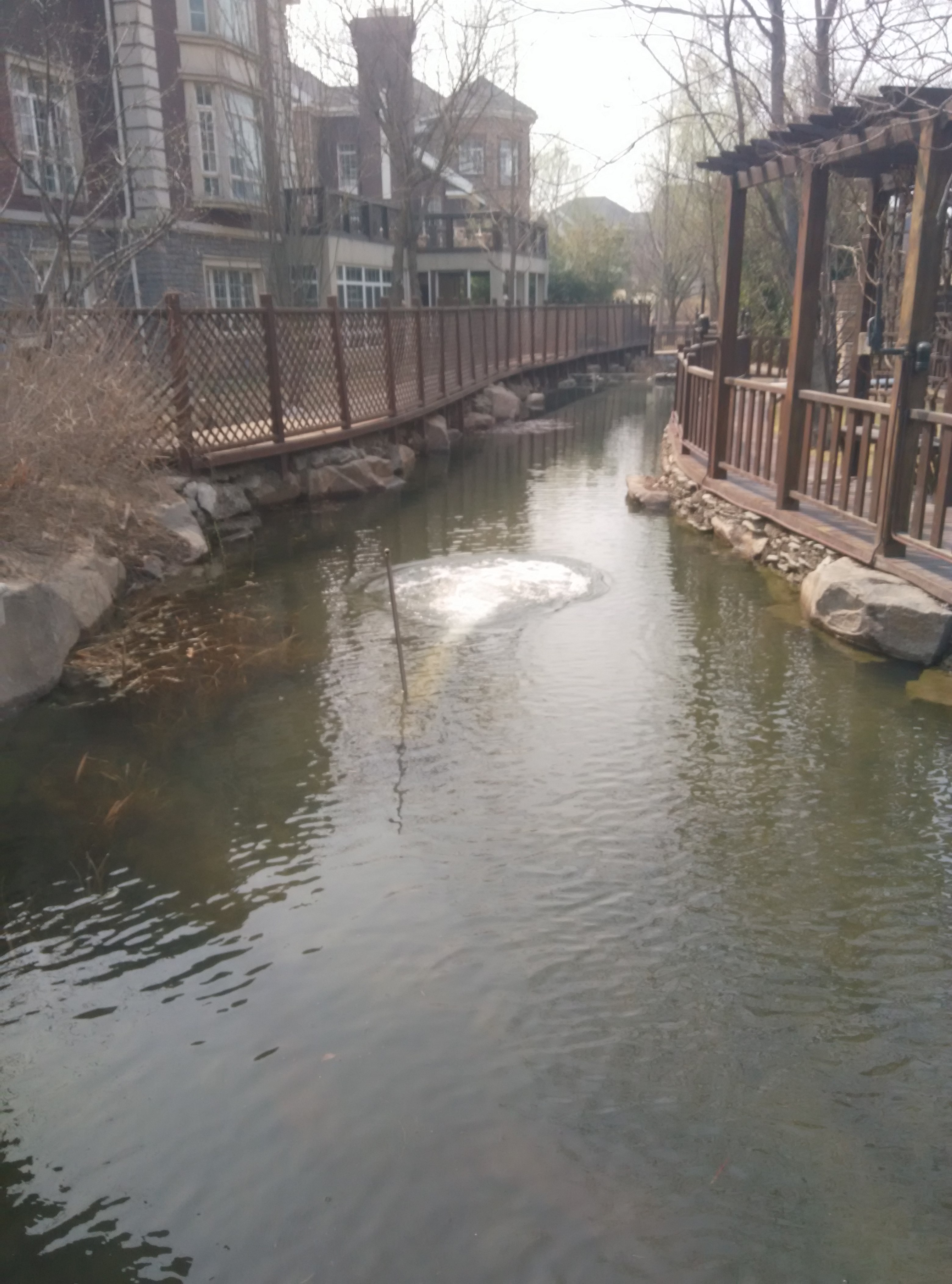 別墅區(qū)景觀河道安裝26臺(tái)擾冰設(shè)備,冬季無(wú)結(jié)冰,實(shí)現(xiàn)四季溪水長(zhǎng)流。
