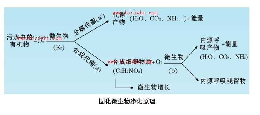 微生物和藻類有著相同的食源,而固化微生物在搶食能力方面強(qiáng)于藻類,所以藻類因得不到食物而死亡,死掉的藻類將被微生物消化掉。